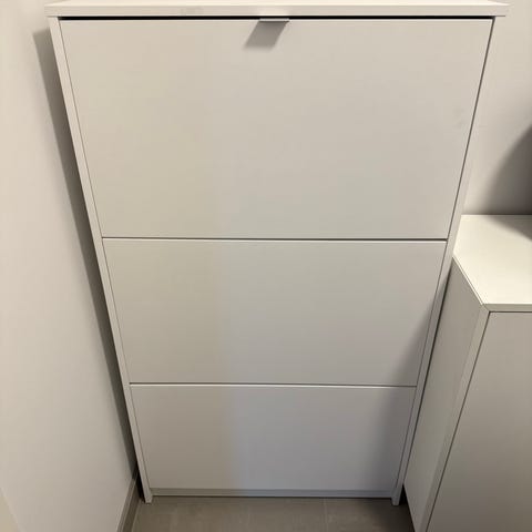 Hvitt skoskap selges, med tre luker.