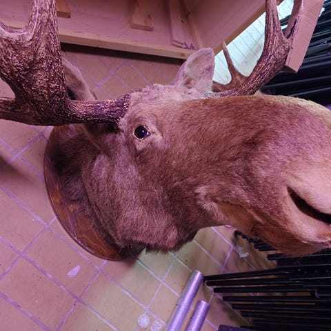 Elgkalv hode med base og oppheng til salgs, mål på bildene.