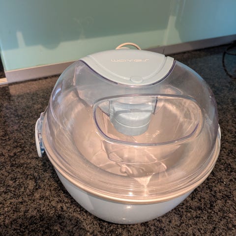 Komplett Waves ismaskin med kapasitet på 1 liter. Enkelt å bruke med på/av-bryter. Lett å rengjøre med varmt vann. Egnet for å lage iskrem, yoghurt, is og sorbet. Farge: grønn.