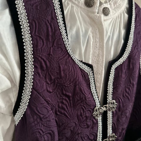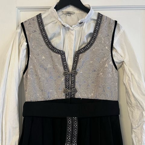 Festdrakt selges, uten skjorte. Den er pent brukt og har ingen skader som vi kan se. Beltet festes med borrelås.