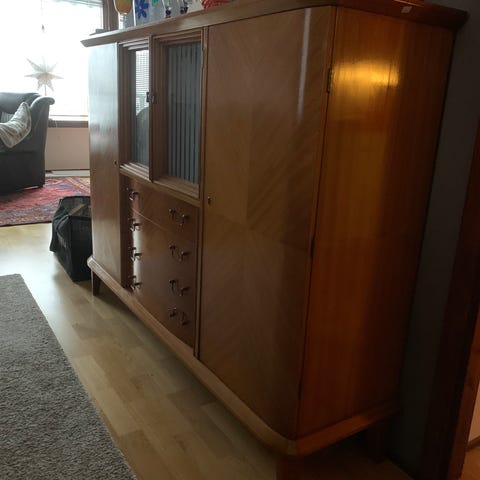 Meget pen seksjon/skap i teak, innebygget lys i skapet