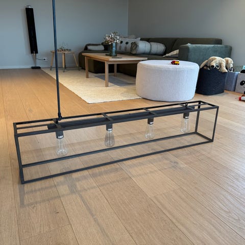 Håndlaget pendel i messing med glass rundt og åpen topp/bunn. Dimbare pærer medfølger.