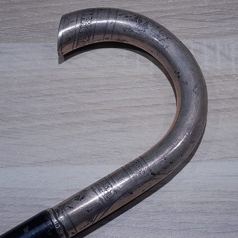 Antikt dekorativt metallgrep – trolig spaserstokk