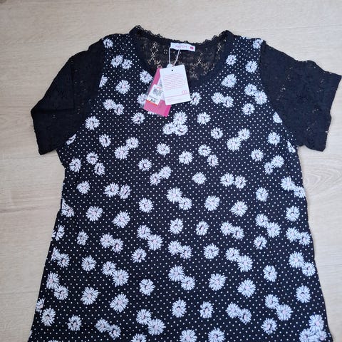 Ubrukt t-skjorte med prikker og stilig detalj nederst på toppen med knapper.