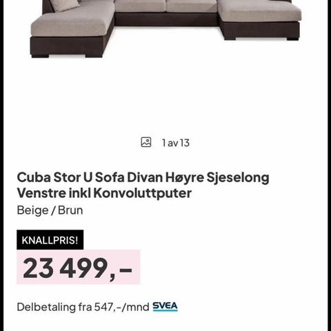 Sofa må hentes på henger/varebil. Sendes ikke