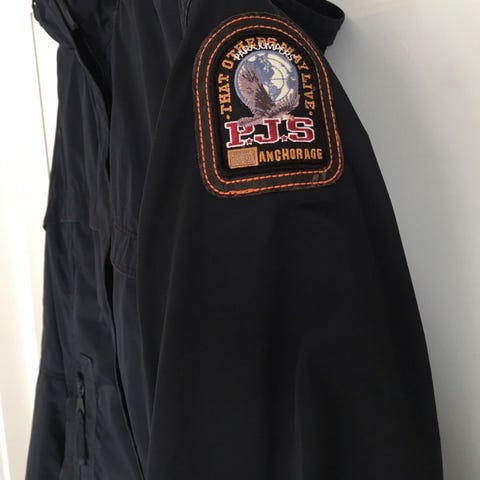 Godt brukt parajumper str xxl, liten i str vil si den tilsvarer xl. Litt smårifter her og der. Begge glidlåsene på lommene er ødlagt. Trengs en god vask