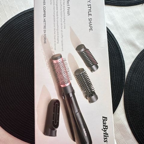 Helt ny og ubrukt 5 in 1 hårfønerbørstesett. Settet inkluderer en hårføner med børste, rund børste, og flere stylingverktøy for å tørke og style hår. Passer til ulike hårtyper og stylingbehov.