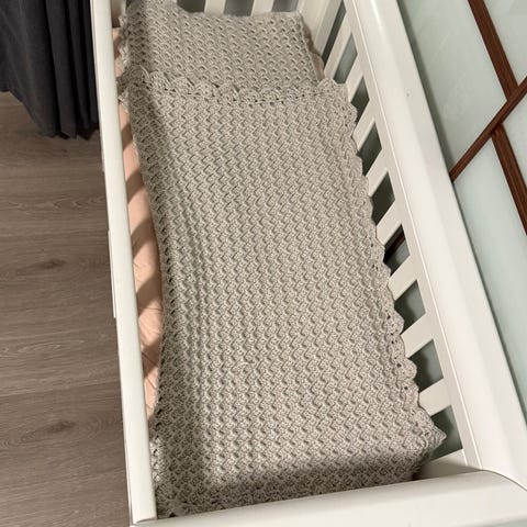 Fin, tidløs design. Bunnen i sprinkelsenga kan monteres i to ulike høyder. Bunnen har god luftsirkulering. Vi har vært veldig fornøyd med senga.
