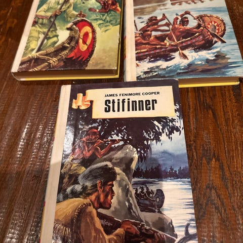 Godt brukt, godt lest (?) barne-/ungdomsutgave av "Lærstrømpe". I samme bokserie som "Den siste mohikaner". Utgitt 1941.