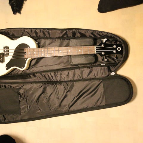 Fender Jazz bass Aerodyne (crafted in Japan), ønsker å bytte mot en 5-strenger. Bassen fungerer som den skal, men har noen kosmetiske skavanker (se bilder). Sprekken er bare i lakken, ikke selve gitaren, og har ingenting å si for bruken.