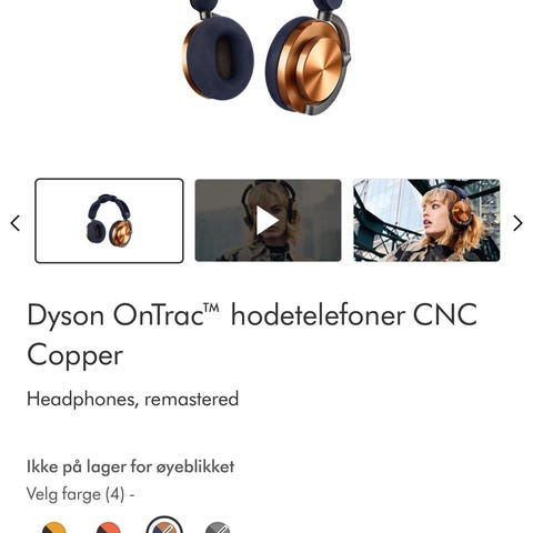 Dyson hodetelefoner med gul polstring på øreputene og sammenleggbart design for enkel oppbevaring. Hodetelefonene har en kombinasjon av metall og stoffmaterialer, med merket "dyson" på sidene. Leveres med etui, ladekabel og bruksanvisning. Og kvittering med 5 års reklamasjon 2 års garanti.