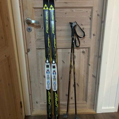 Fischer smørefri ski 140 cm og staver 90 cm selges samlet. Godt brukt av ett barn. Må hentes av kjøper 😊