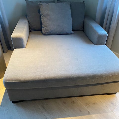 Selger en pent brukt boston daybad pga flytting. Veldig god å sitte/ligge i. Ingen synlige merker/skader. Ser ny ut. Svarte puter følger med.
