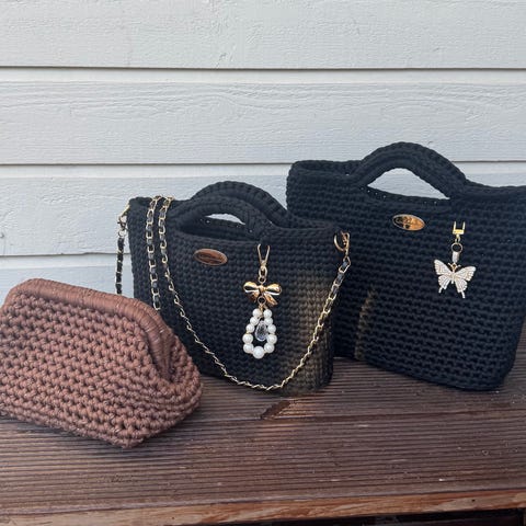 Supersøt heklet selskapsveske med liten tilhørende portemonet.
