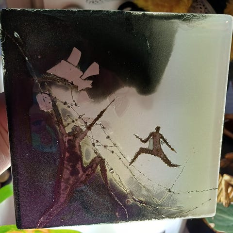 Stilig pynt som kan henges opp. I god stand. Høyde ca 26 cm, bredde 15 cm.