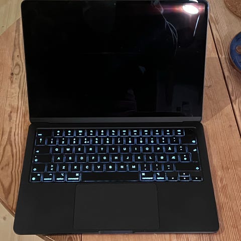Selger en MacBook Air 13,6" med Apple M2-chip (2022-modell) i fargen Starlight. Maskinen er nesten ubrukt og fremstår som svært pen, uten riper, merker eller skader. Fungerer helt som den skal, og batteriet er i meget god stand.