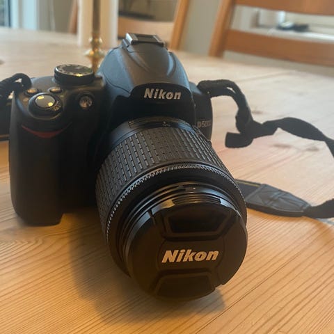 Selger Nikon D5000 med Sigma 50mm. Kjøpt brukt, men har ikke fått brukt det mye da jeg allerede har et likt kamera. Tar veldig gode bilder, og Sigma-linsen er en klar favoritt.