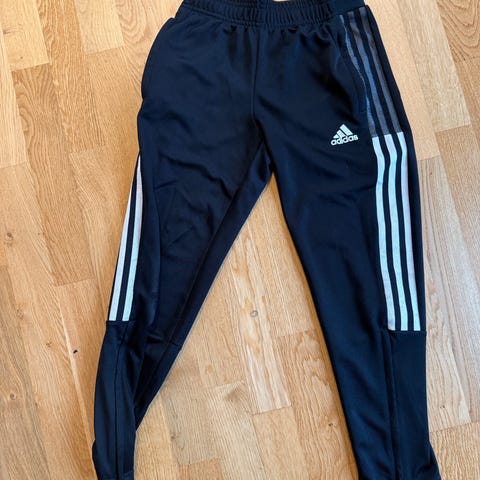 Begge buksene har fått tydelige merker etter få gangers bruk, se bilder. Umbro bukse str 152, adidas bukse 9-10 år. Selges samlet for 50.