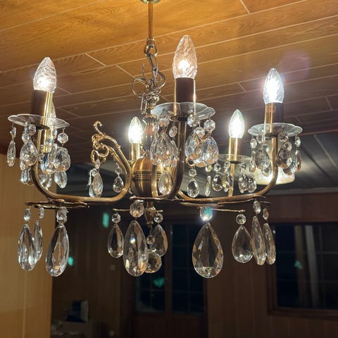 Flott lysekrone fra Skytterholm, med ekte prismer. Nypris var 4990,-