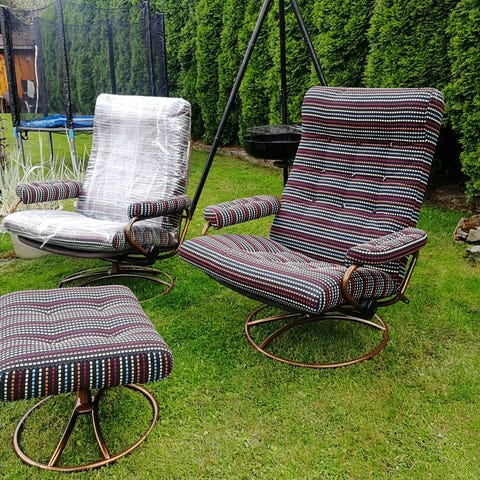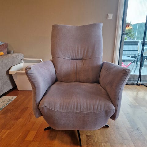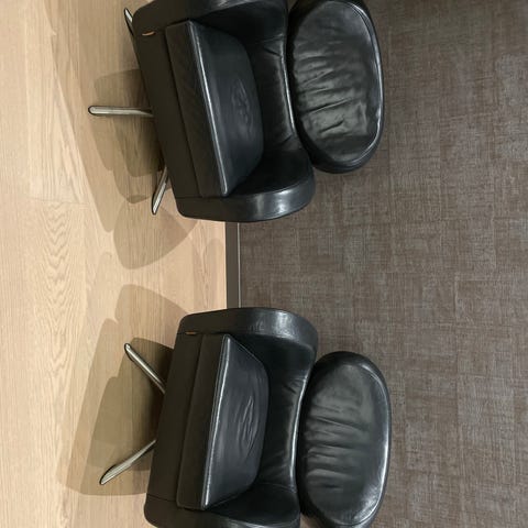 2 stk. Ekornes stressless i skinn, med 2 krakker i samme utførelse. Dette er flotte lenestoler som selges fordi vi går over til lenestoler i stoff. De ser helt nye ut, og er lite brukt. Justerbar nakkestøtte. Selges samlet for kr. 8000 pr.stk med krakk.