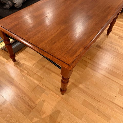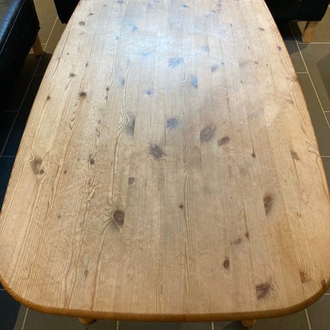 Bord med løveføtter, usikker på tresort. Bruksmerker.