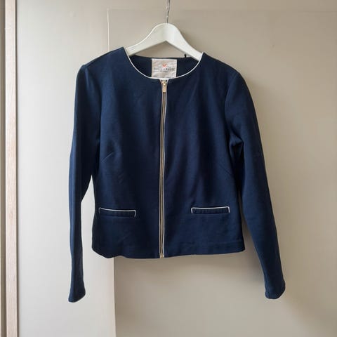 Lindex Holly & White damejakke i størrelse XS. Jakken er blå og laget av bomull. Passer til kvinner og har en klassisk design som kan brukes i ulike sammenhenger.