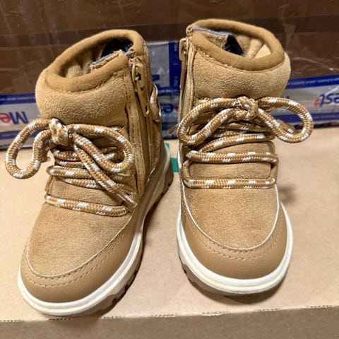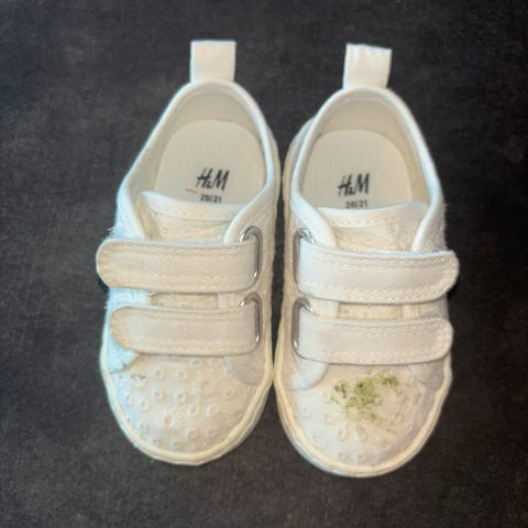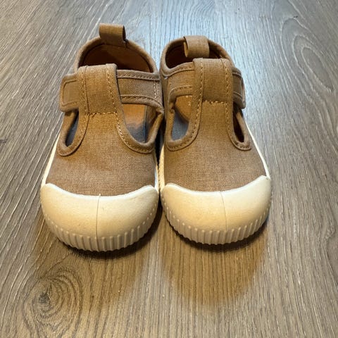 H&M unisex barne sko i størrelse 20. Skoene er beige og har borrelås for enkel tilpasning. Passer for små barn og har en såle med godt grep.