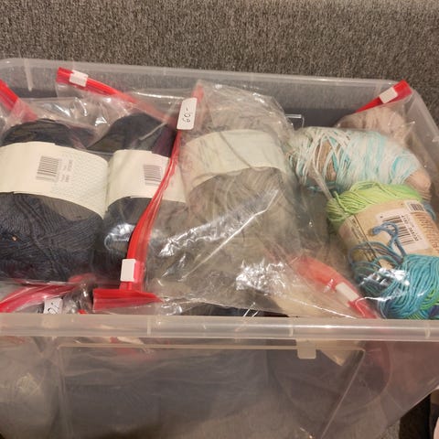 Selger masse hekle/strikketilbehør. Settet har blitt brukt til å hekle fluffy bamser. Garnkurven består av en mix av forskjellige typer garn, men hovedsaklig mykt, velvet og chunky garn. Veldig soft og mykt.