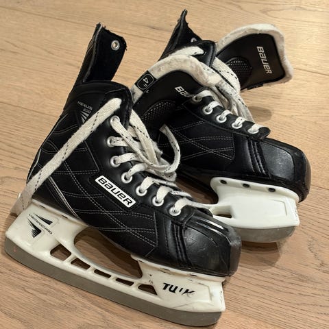 Jofa 150 ishockeyskøyter i svart farge med hvite detaljer. Skøytene har tradisjonell snøring og ingen synlige skader. Størrelse 41
