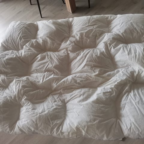 Junior dundyne og pute størrelse 100x140 cm på dynen og 40x60 cm på puten.