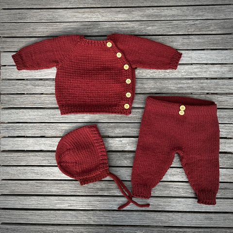 Strikket hentesett til baby str 50/56