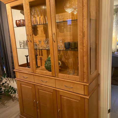 Vitrineskap fra IKEA av serien Billy gis vekk pga plassmangel og vannskade nederst på høyre side av skapet. Må hentes.