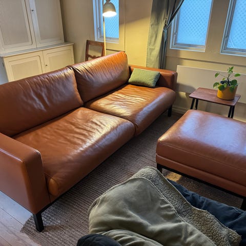 Selges rimelig grunnet godt brukt, og jeg tar høyde for at det er andre bruksmerker også. Men dette er en nydelig sofa som funker til det den skal, og har tålt årene godt! Kjøpt brukt av undertegnede selv i sin tid. Ny pris ifølge tidligere eier var godt over 50k samlet.