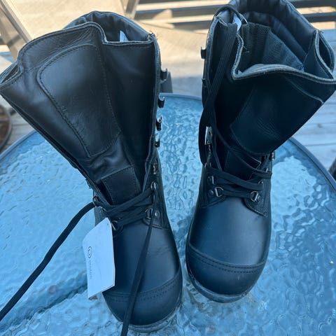 Tradisjonelle samiske skaller i reinskinn fra 1990-tallet. Selges med tilhørende kartanker. Fleksible i størrelsen, mellom str 38 og 39. Sami duodji fra Finnmark. Til penbruk. Lite brukt. Selges pga allergi.