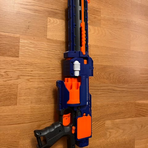 Høy kapasitet: Blasteren leveres med et ammunisjonsbelte for 30 skudd og har en kapasitet på 60 piler ved hjelp av to 15-skudds sylindere for rask omlading.