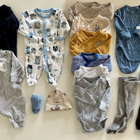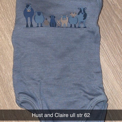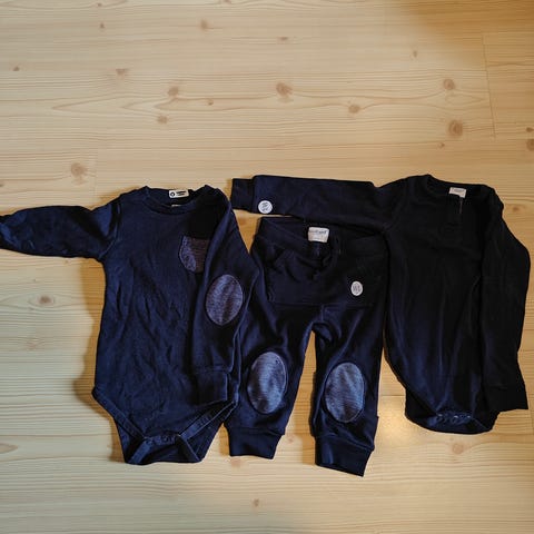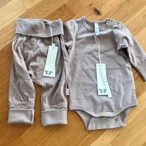 Selger liten klespakke som er ubrukt i str 50/56. Det følger med 1 body str 50 og 2 bukser str 56. Ubrukt 2 pk ullsokk str 50/56. Nypris samlet for 620,-