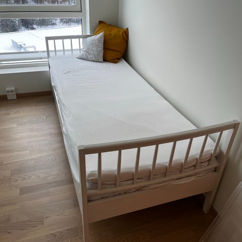 Gis bort mot henting. Har byttet til 2 nye 90 madrasser m forskjellig fasthet. Madrassen har skum og fjører. Har blitt benyttet med overmadrass over. Trenger å hentes ASAP.
