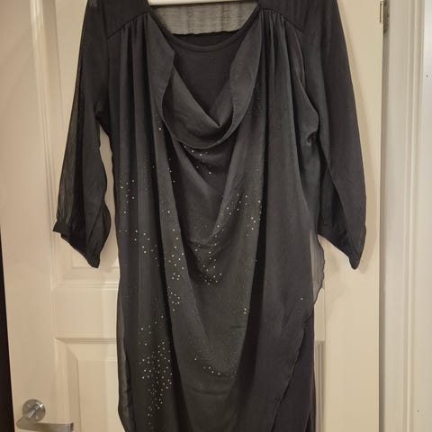 Strikkejakke med hette fra Monica Nyhus,str s/m men stor i str. Sydd litt om da ermene var veldig lange . Også den bare brukt et par ganger.