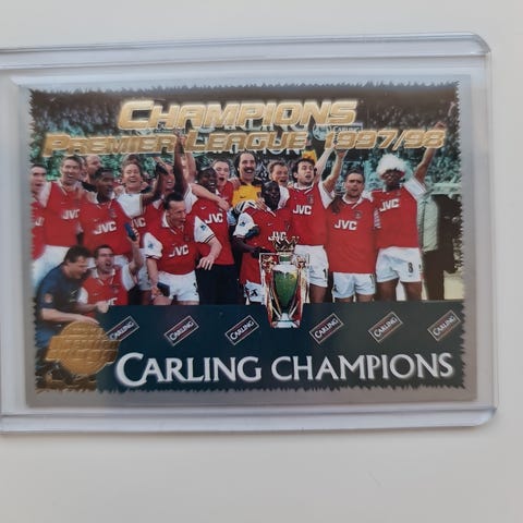Arsenal Fotballkort fra 1994-95 Premier League-sesongen. Kortet viser en spiller i klubbens drakt med JVC-logo. Kortet har informasjon om spillerens navn, statistikk og klubbens logo på baksiden.