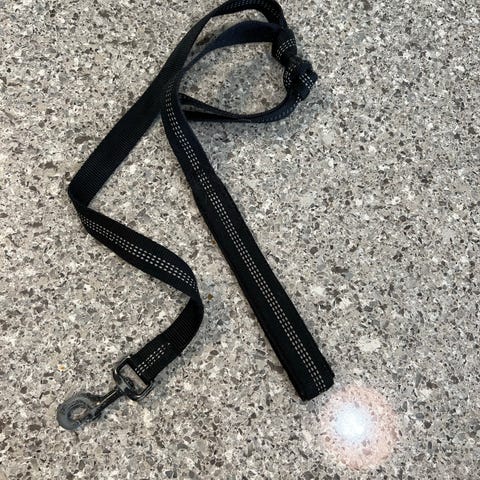 Refleksvest til hund gos bort. Nyvasket men har fått litt farge av kobbelet. Har sydd hull på ryggen slik at det passer til sele.