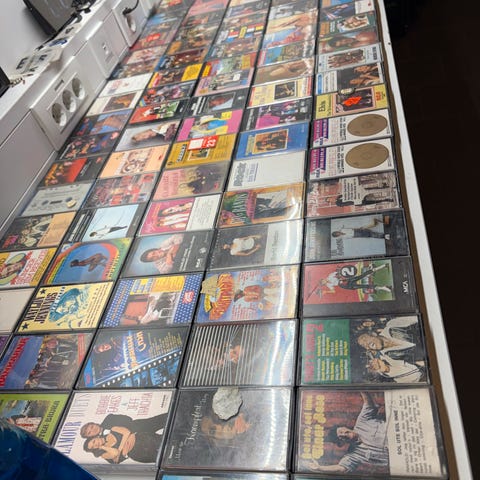 Selger en kassettkoffert med 24 kassetter. 15 stk med Sputnik. Resten danseband. Kofferten er i god stand. Har ikke testet alle kassettene for avspilling men ser ok ut.