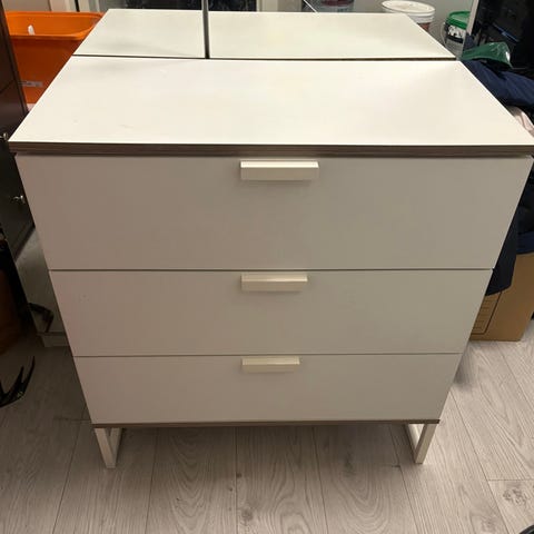 Ene skuffen nede til venstre er fronten løs, men kan bare slås på plass igjen eventuelt få tak i en del på IKEA.
