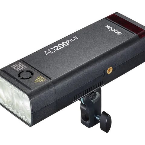 Godox AD200Pro Blitzlys med trådløs 2,4 GHz system, kompatibel med Canon E-TTL, Nikon i-TTL og Sony TTL. Leveres med batteri, ladekabel og stativfeste. Kraftig og portabel med 200Ws effekt, justerbar styrke fra 1:256 til 1:1. Inkluderer speedlite-type blitsenhet og ledetall 52 (ISO 100, 35mm). Stabil fargetemperatur på 5600 K. Egnet for fotografering med ulike kameraer og oppsett.
