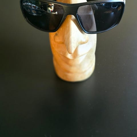 Morsom brilleholder av et ansikt, som får det til å se ut som trefiguren går med brillene dine.