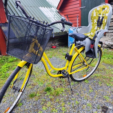 Kul gul landeveissykkel. Har hatt noen fine turer med denne, bl.a Hirtshals-Aarhus. Må kvitte meg med den pga flytting til Kristiansand. Er montert på bagasjebrett så fint for lengre turer.