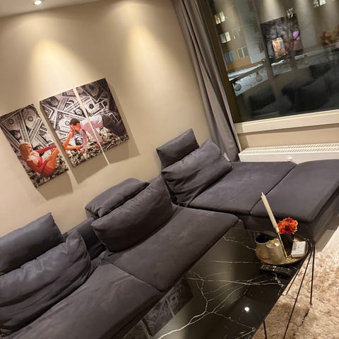 OBS! Selges som den er og føttene til sjeselongen og hjørne mangler, men kan kjøpes hos IKEA fremdeles.