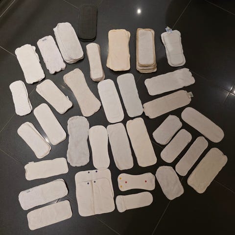 Har mange tøybleier til salgs