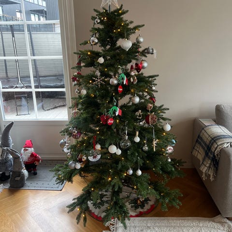 Juletre i plastikk fra Everlands. Godt brukt, men har fortsatt veldig mye bruk igjen. Selges, da vi ønsker et høyere tre til neste sesong. Juletreet er 180 cm høyt og kommer i opprinnelig eske. Enkelt å montere. Juletrepynt medfølger ikke.