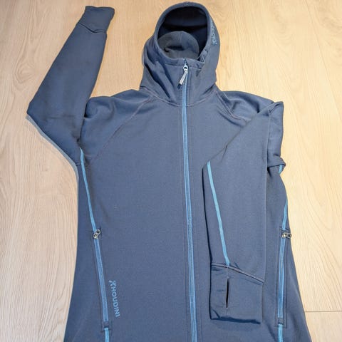 Skallbukser fra Houdini, kjøpt i 2024 og svært lite brukt. Litt lysere farge på stoffet over et par skjulte glidelåser og nederst på buksebeinet, se bilder. Ellers ser de tilnærmet ubrukt ut, og det er de da også. Størrelse large, jeg skulle hatt medium. Fargen heter "baremark green", men framstår grå. Nypris 6500, men selges ikke lenger ny i denne fargen.