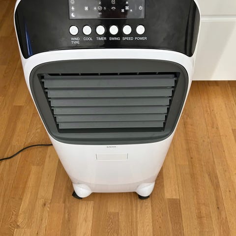 Aircondition for kjøling av rom opptil 26m², tre hastigheter, portabel. Kjøpt fra Komplett.no i 2024, men finnes ikke lengre i deres sortiment. Ordinær pris på produktet var 4999,-